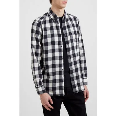 French Connection Gingham Flannel Long Sleeve Casual Shirt Ecru/marine