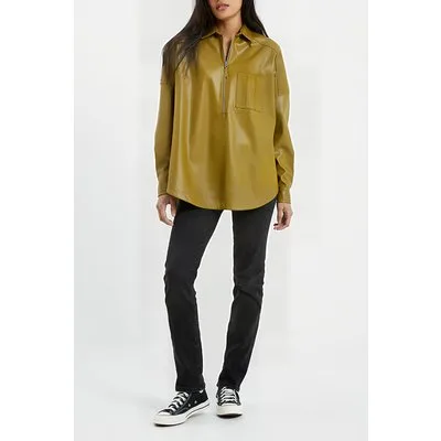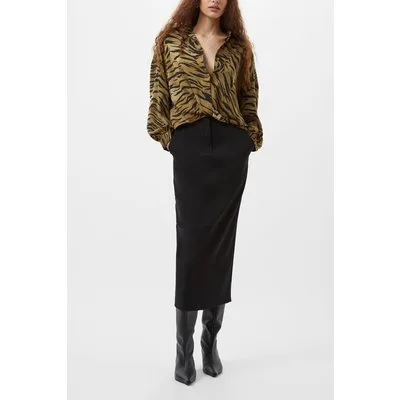 French Connection Damasco Adeline Print Tuck Shi Golden Olive Khaki