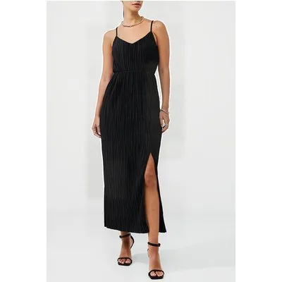 French Connection Althea Pleated V Neck Dress Mocha Mousse