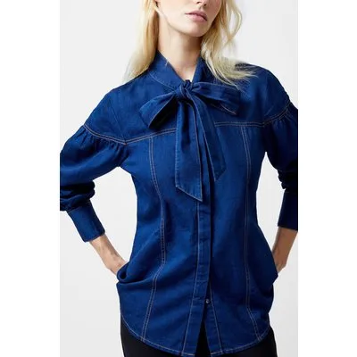 French Connection Zaves Chambray Button Through Clean Indigo Denim