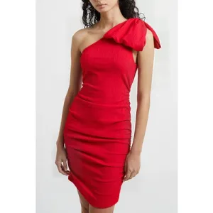 French Connection Sonya Ribbed One Shoulder Dres Red
