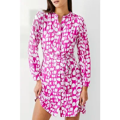 French Connection Riley Henley Dress Knee Wild Rosa/ivory