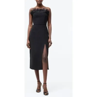 French Connection Bandeau Organza Mix Frill Midi Dress Black