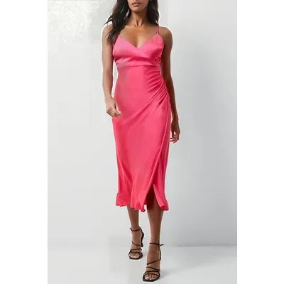 French Connection Ennis Satin Slip Midi Dress Azalea