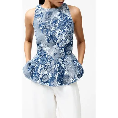 French Connection Charlotte Jacquard Peplum Top Light Wash