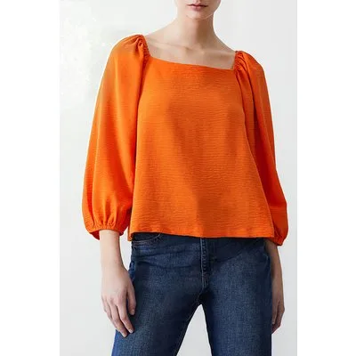 French Connection Balloon Slv Sq Nk Crinkle Top Mandarin