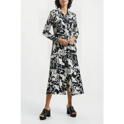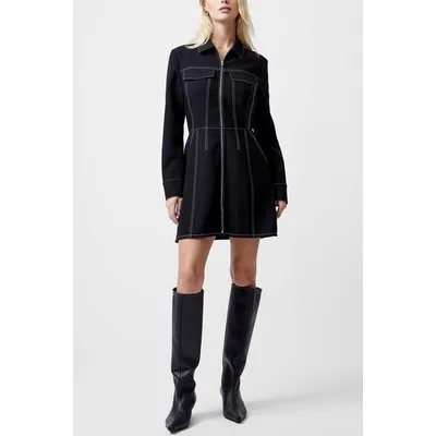 French Connection Poplin Tie Waist Shirt Dress Midnight