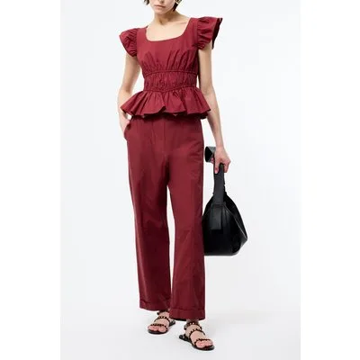 French Connection Cambria Cotton Scoop Neck Top Summer Burgundy