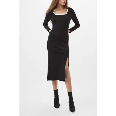 French Connection Rassia Rib Sq Nk Midi Dress Black/porcelain Crea