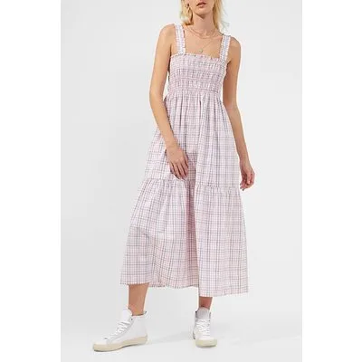 French Connection Rhodes Gingham Pop Smocked Dress Pink Gingham