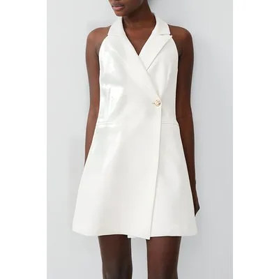 French Connection Whisper Halter Blazer Dress White