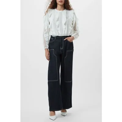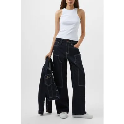 French Connection Zuzi Linen Blend Dnm Wide Jean Mid Blue