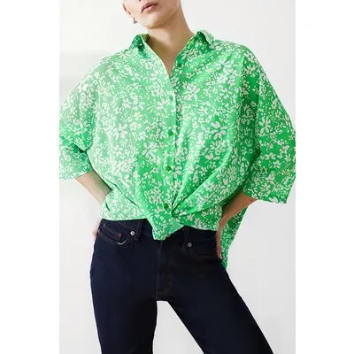 French Connection Florale Twist Crepe Light Top Poise Green/white