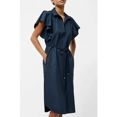 French Connection Cambria Cotton Belted Dresss Navy