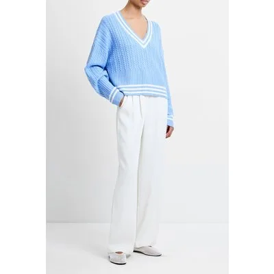 French Connection Babysoft Cable V Neck Jumper Dusted Blue/win Wht