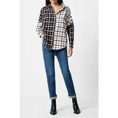 French Connection Mixed Flannel Check Popover Black