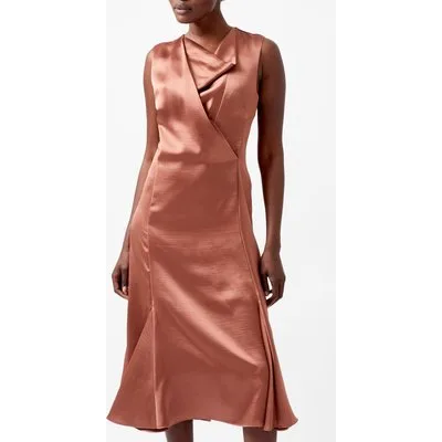 French Connection Irina Satin Slvlss Cowl Nk Drs Russet Brown