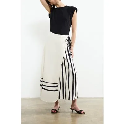 French Connection Genevieve Ariette Linen Skirt White/black