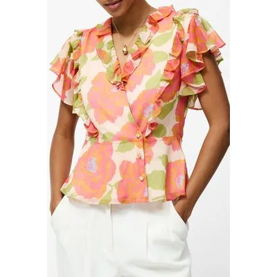French Connection Louisa Hallie Crinkle Blouse Orange Multi