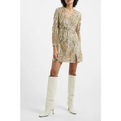 French Connection Anadia Embellished Dress Rose Gold Multi