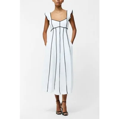 French Connection Ariette Linen Long Flared Drss Linen White/black