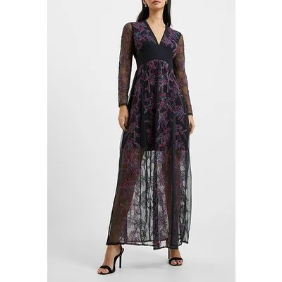 French Connection Emilia Embroidered Mxi Dress Black
