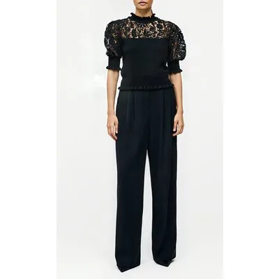 French Connection Crochet Lace Mix Knit Top Black