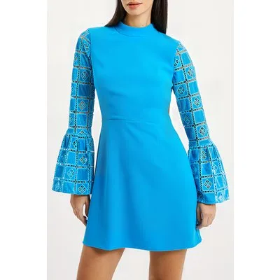 French Connection Garnet Velvet Lace Mini Dress Blue