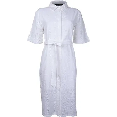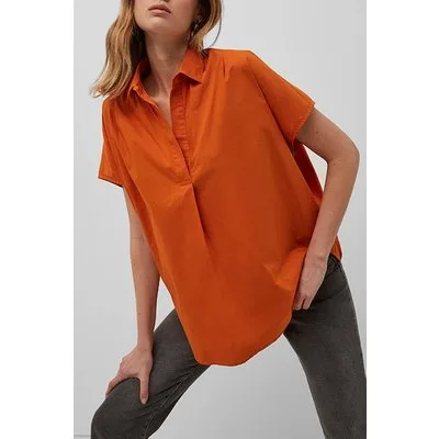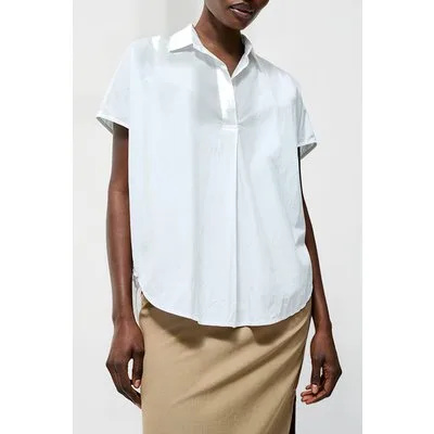 French Connection Broderie Back Short Sleeve Popover Shirt Linen White