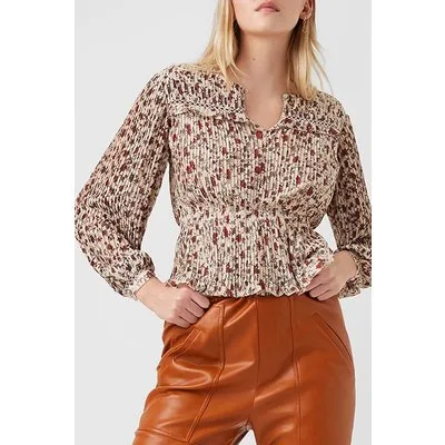 French Connection Alison Recycld Ggt Pleatd Top Classic Cream Multi