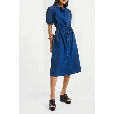 French Connection Zaves Chambray Ss Shirt Dress Blue