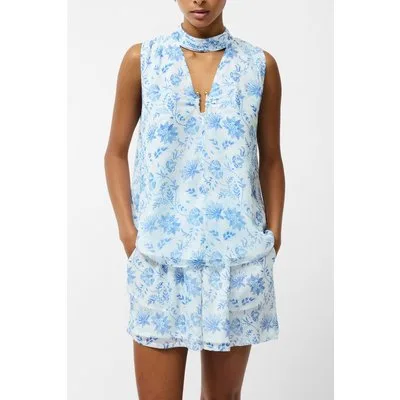 French Connection Serenity V Neck Trim Top Cream/blue