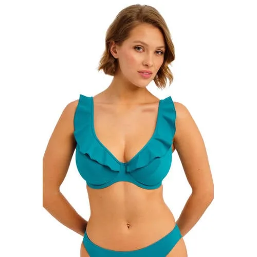 Freya niet-voorgevormde beugel bikinitop Jewel Cove met ruches turquoise