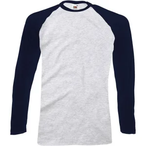 Fruit of the Loom Heren Baseball T-shirt met lange mouwen (Grijs/Diep marineblauw)