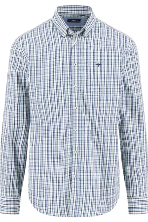 Fynch-Hatton Casual Fit Overhemd lichtblauw, Ruit