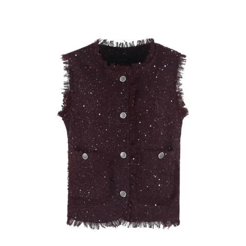 G-maxx gebreid vest donkerpaars met pailletten