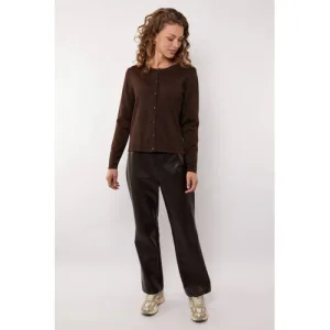 G-maxx X Froukje imitatieleren straight regular waist coated broek donkerbruin