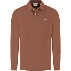 GANT Shield Poloshirt lange mouw zwart, Effen