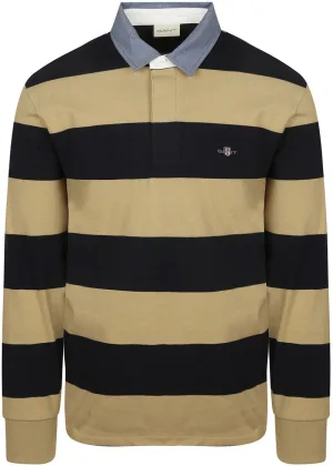 Gant Heavy Rugger Shield Longsleeve Polo Streep Navy Beige
