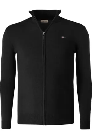 Heren Gant Katoenen Pique Half Zip Sweat in Zwart