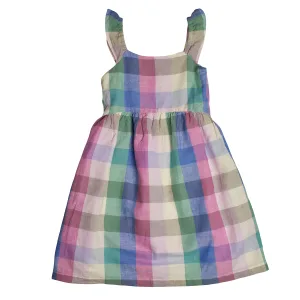 Kariertes Leinenkleid mit Trägern für Mädchen 801379
