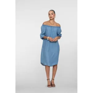 Geisha off shoulder jurk medium blue denim