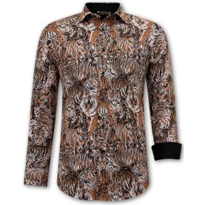 Gentile Bellini Overhemden lange mouw met slim fit bruin