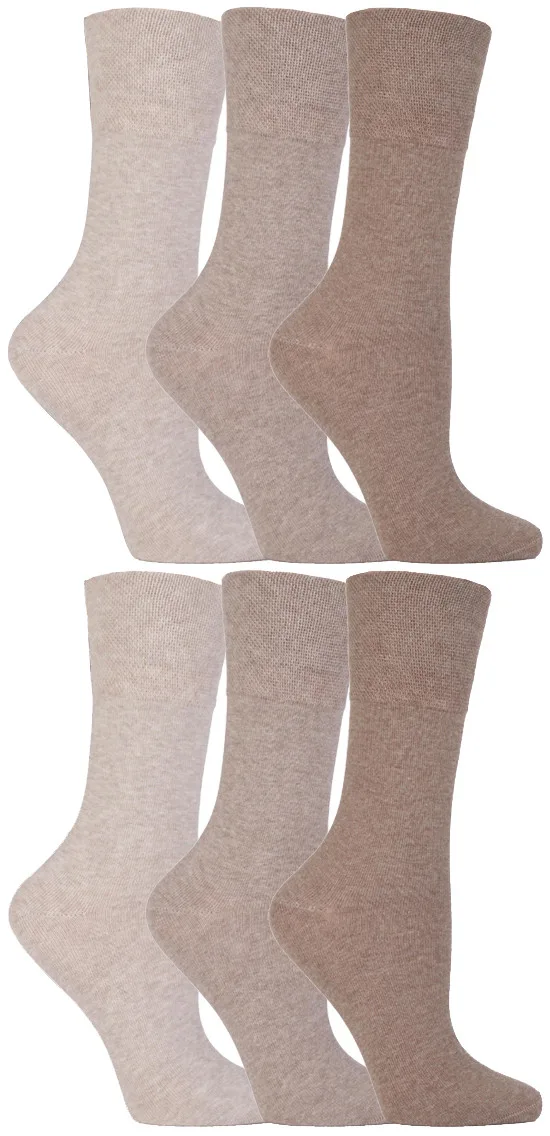 Gentle Grip – 6 paar diabetische damessokken – Beige