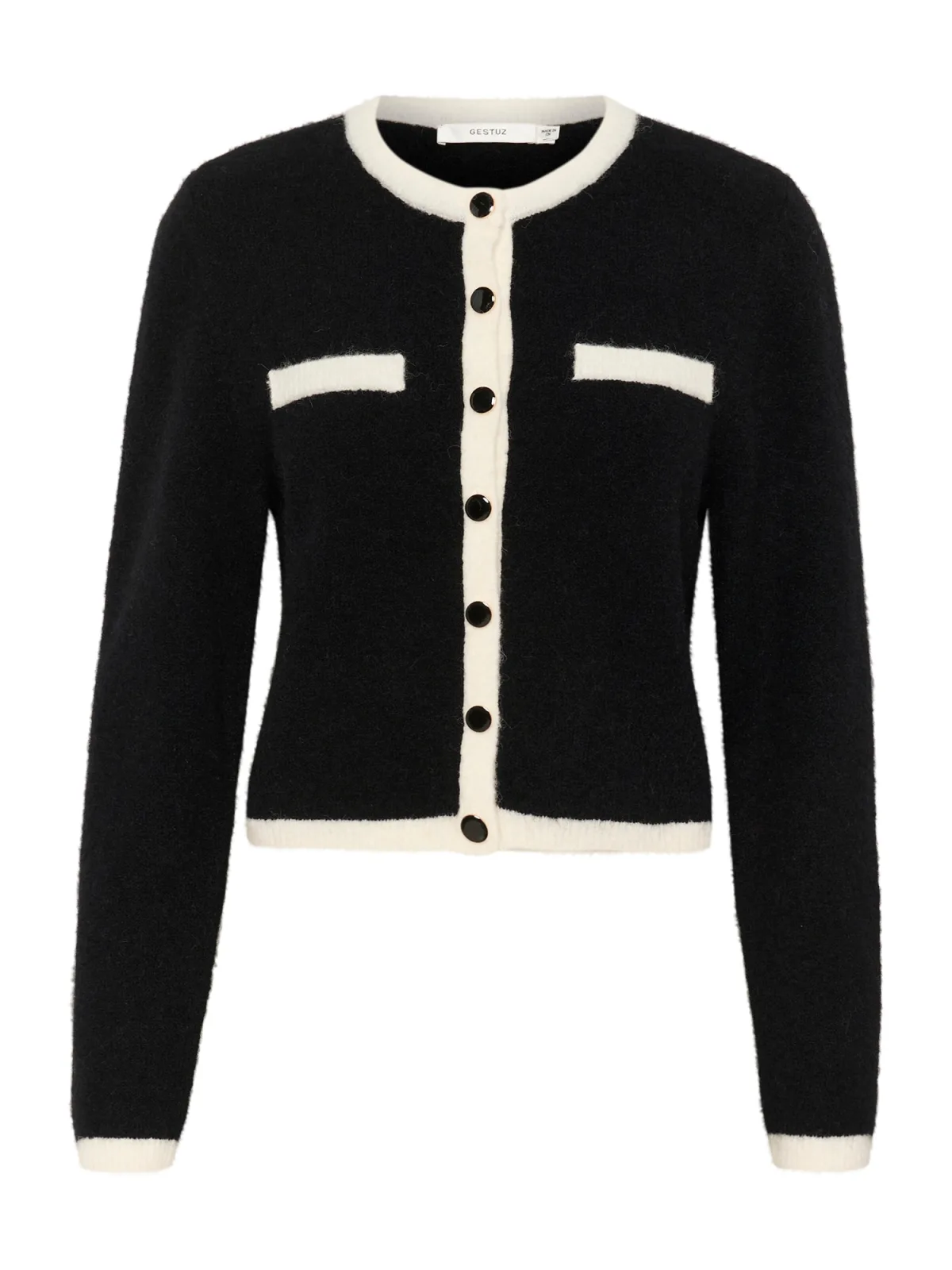 Gestuz Gebreid vest ‘GZAlpha’ ecru / zwart
