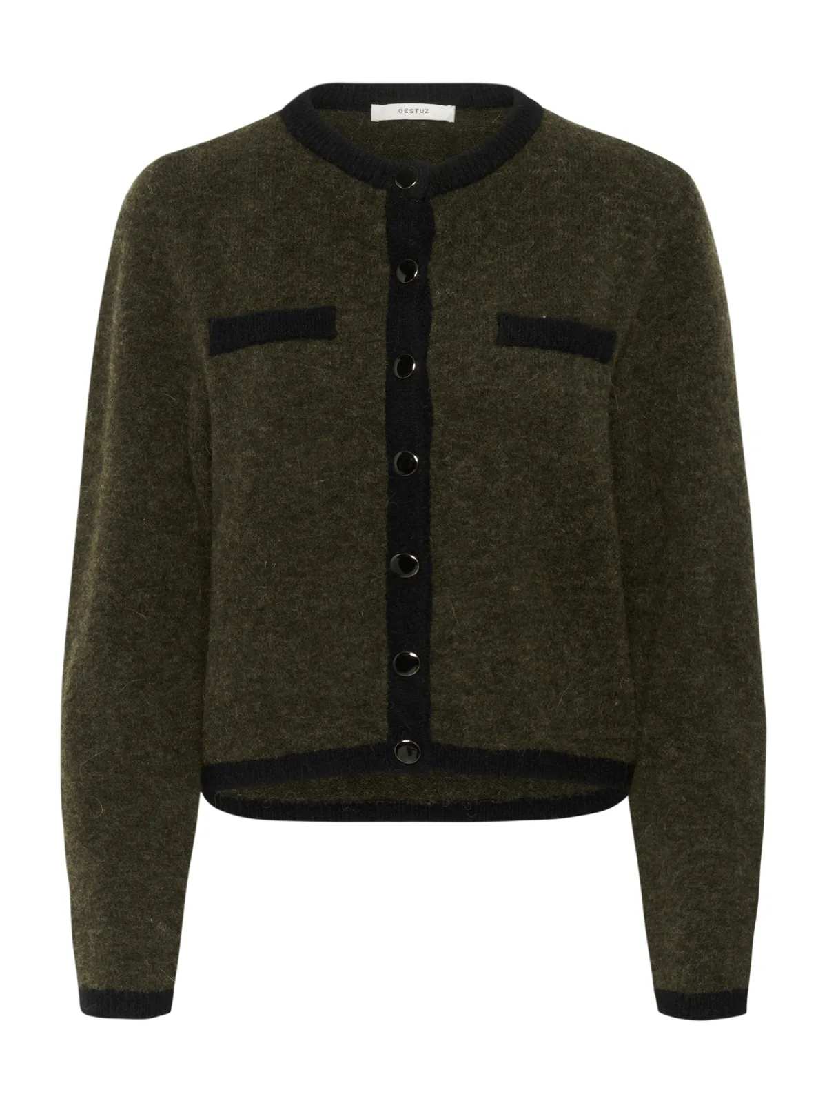 Gestuz Gebreid vest ‘GZalpha’ olijfgroen / zwart