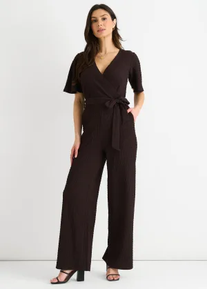 Trui wikkel-jumpsuit met wijde pijpen in chocoladestructuur