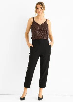 Hemelsblauwe broek met elastische taille en uitlopende pijpen