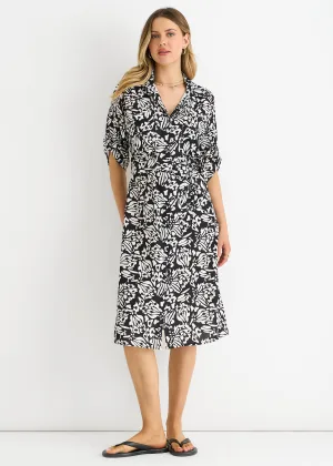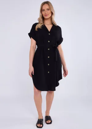 Zwarte midi-jurk met knoopsluiting en ceintuur