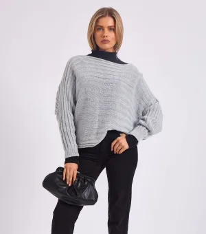 Gestreepte gebreide oversized trui met vleermuismouwen